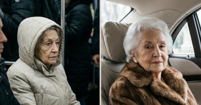 NA MANHÃ SEGUINTE, UMA LUXUOSA LIMUSINE PRETA COM VIDROS ESCURECIDOS ESTAVA ESTACIONADA EM FRENTE À MINHA CASA. A porta abriu-se e ela estava lá dentro — mas já não era a mulher frágil de ontem. Parecia muito rica, sentada direita e confiante. Ela convidou-me a entrar e, demasiado cansada para protestar, entrei. O interior cheirava a couro e a dinheiro. Margaret sorriu e confessou: “Passaste no teste.” Descobri que ela se sentava perto do metro todos os dias para ver quem parava e quem fingia não ver. Ela queria saber em quem podia confiar.