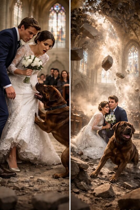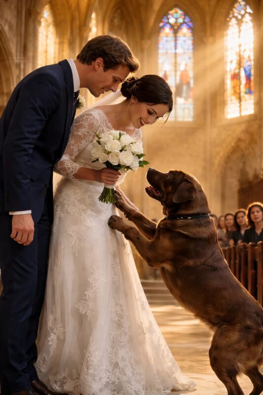 E todos se lembraram daquele dia não como o dia do casamento… mas como o dia em que o cão salvou duas vidas.