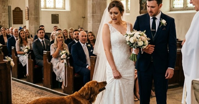 De repente, saltou e agarrou a base do vestido da noiva, começando a puxá-la para trás. Os latidos tornaram-se ainda mais altos, mais estridentes, quase histéricos. As pessoas na igreja começaram a entreolhar-se; alguém estava claramente irritado, outro, assustado, segredava qualquer coisa a um vizinho. O noivo tentou afastar o cão, mas o animal parecia alheio e arrastava teimosamente a noiva para longe do altar.
