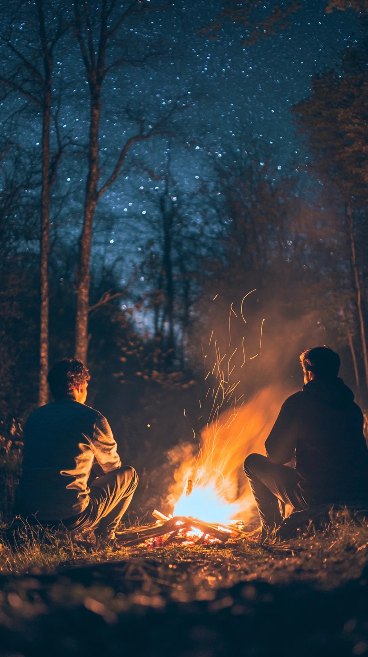 Após o jantar junto à fogueira, a Sra. Johnson levou a Mila para a tenda. O senhor Johnson olhou para o Eric.