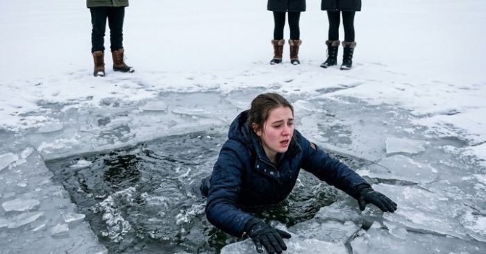 O meu marido e os seus familiares empurraram-me deliberadamente para um lago congelado como uma “piada engraçada”, embora eu tenha pedido repetidamente para que não o fizessem 😱😨