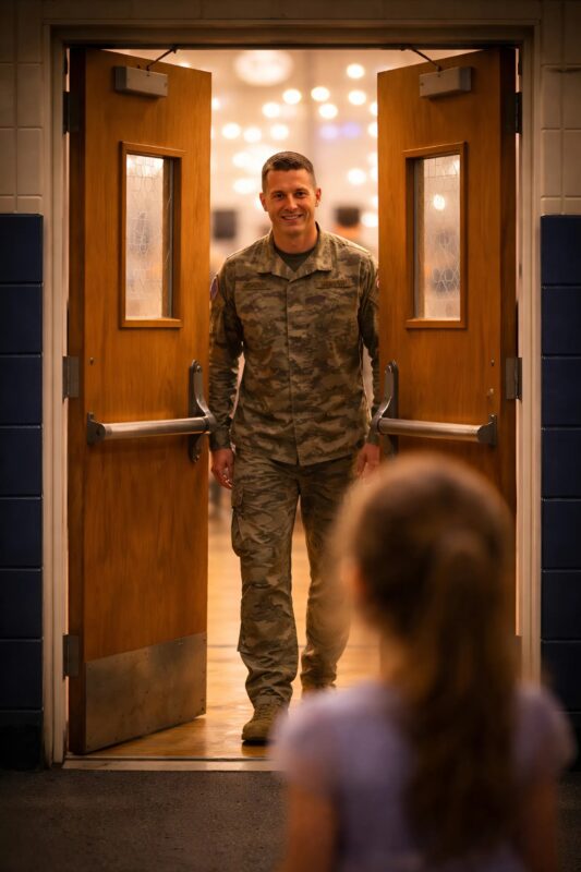 Naquela noite, o ginásio da escola estava cheio de luzes, música e alegria, mas, para uma menina, o local parecia completamente diferente.