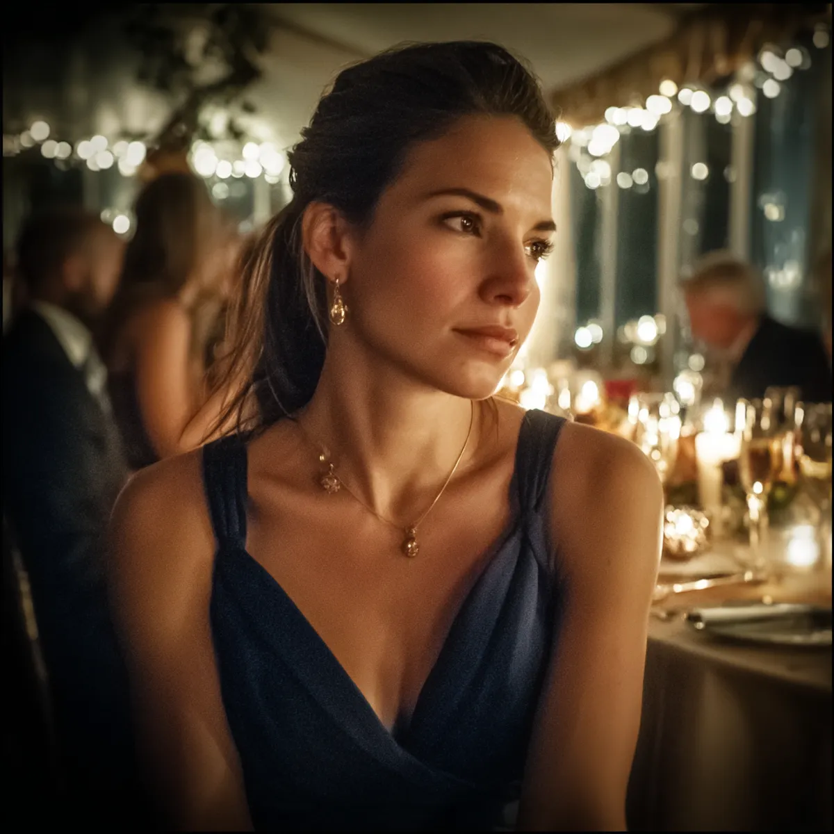 O dia do casamento estava soalheiro e fresco. Eu usava um vestido azul-marinho. Nada chamativo. O meu cabelo estava apanhado num coque elegante. Para mim, não para eles.