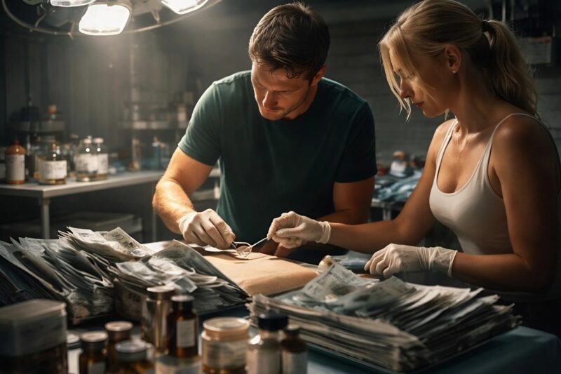 O meu marido e a sua amante estavam a realizar cirurgias ilegais no porão.