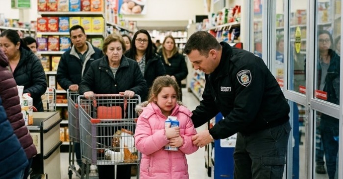 Via-se claramente a menina junto ao frigorífico de laticínios. Ficava ali por muito tempo, olhando para as prateleiras, como se estivesse a calcular algo na cabeça. Depois pegou cuidadosamente numa pequena caixa de leite.