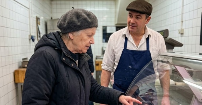 “Como sempre, quarenta quilos de carne”, disse ela baixinho, estendendo a mão com notas de dinheiro cuidadosamente dobradas.